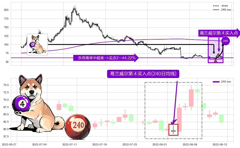 ⚀ 2022-08-02-日显现 葛兰威尔均线 240日均线 第④买入点 下降趋势均值回复的短线反弹信号,后市看涨,买进信号