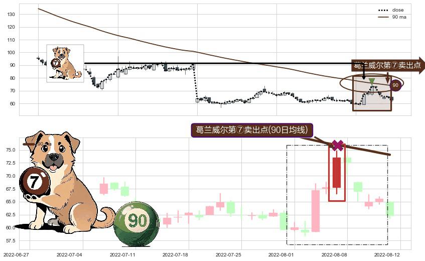 ⚀ 2022-08-05-日显现 葛兰威尔均线 90日均线 第⑦卖出点 下降趋势的中继信号,后市看跌,卖出信号