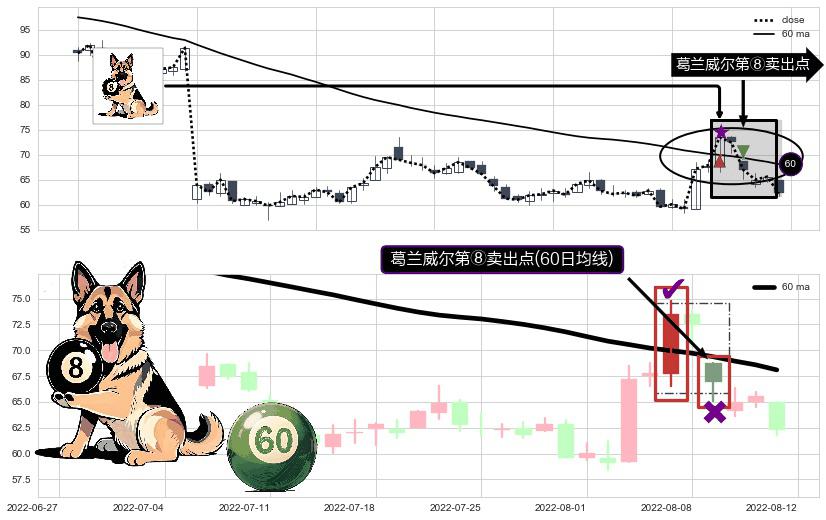 ⚀ 2022-08-09-日显现 葛兰威尔均线 60日均线 第⑧卖出点 下降趋势的中继信号,后市看跌,卖出信号