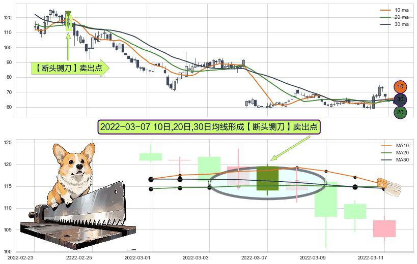 ⚀ 2022-03-07日显现 10日-20日-30日均线 【断头铡刀】卖出点 看空信号,后市看跌,卖出