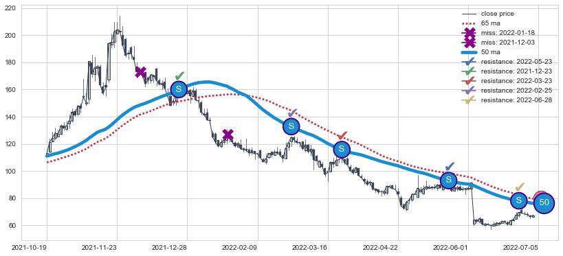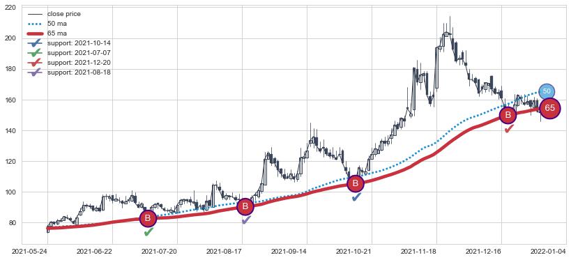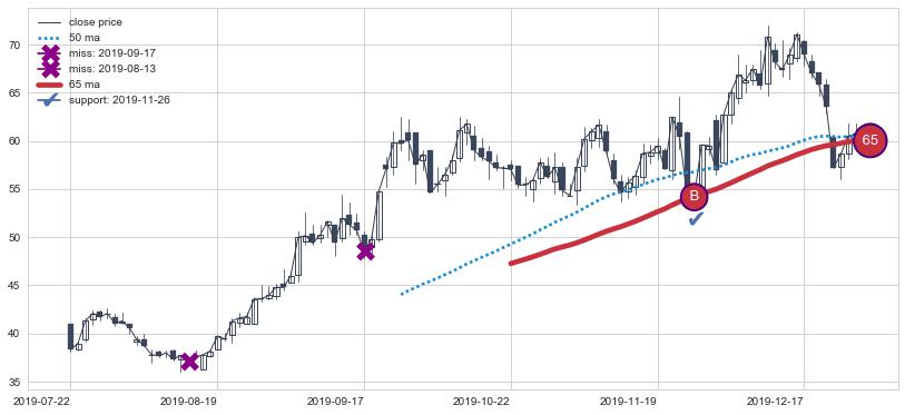 ➢ 最优均线组合共正确确认支撑阻力信号10处,正确确认率 71.43%