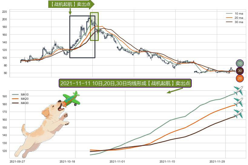 ⚀ 2021-10-21日-2021-12-01日显现 10日-20日-30日均线 【战机起航】卖出点 看空信号,后市看跌,卖出