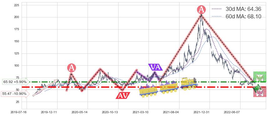 ♘ 阻力价格位65.92,可信任强度58.24%,距离最后交易2022-08-12形成的收盘价格62.25相差 +5.90%