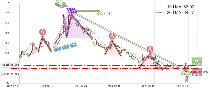 ♘ 阻力价格位68.46,可信任强度85.64%,距离最后交易2022-08-12形成的收盘价格62.25相差 +9.98%