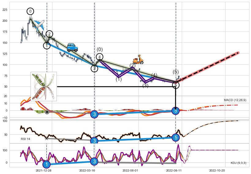 ➣ 1,3,5驱动浪MACD, RSI, KDJ走势都出现【常规背离】反转信号增强