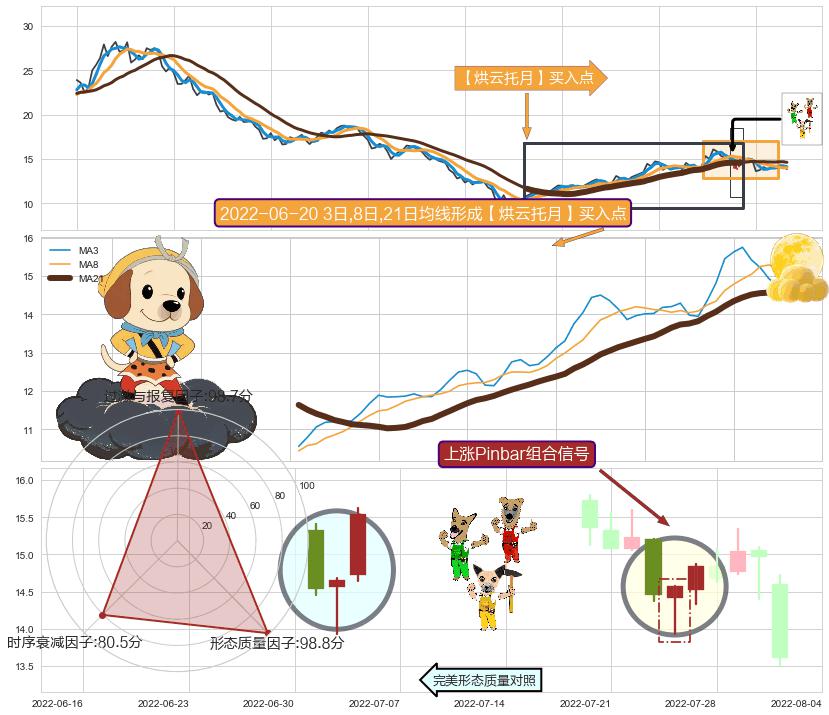 | 3 🅚:锤头线(锤子线) ➕ 🎢:【烘云托月】买入点均线组合买入点信号形成后,猜想后续上升持续,上涨加速(趋势跟踪) ☞ 看多信号 ⇥ 【均线】交织【🅚线】⇥ 综合量化分数: 51 | > |