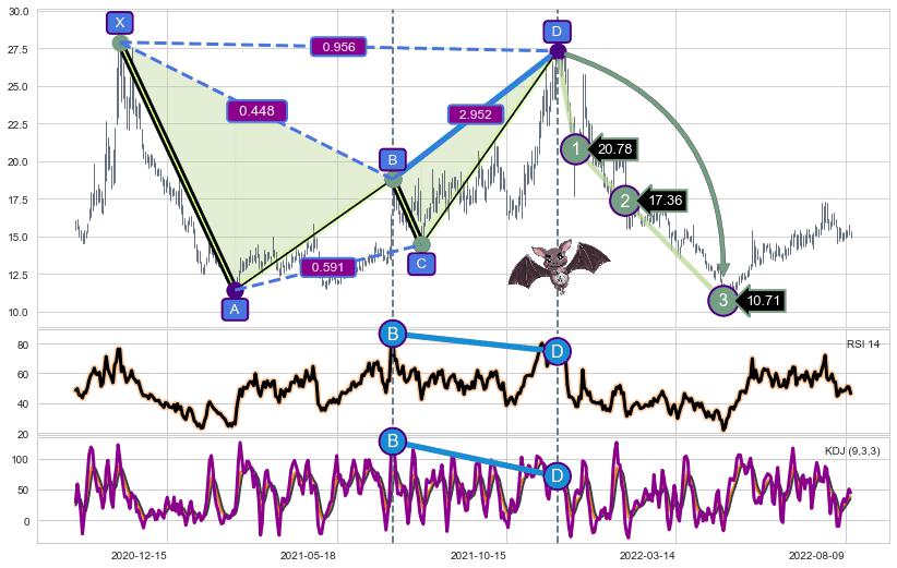 ➣ 已完成【蝙蝠】形态起点X: 2020-11-05, 终点D: 2021-11-26, 共259交易日