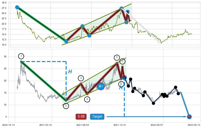 ➣ 2022-01-24到达第❷价格目标位置17.36