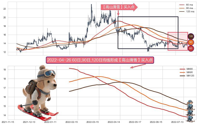 形态多维评估: ⚀ 2022-01-27日-2022-07-19日显现 60日-90日-120日均线 【高山滑雪】买入点 看多信号,后市看涨,买入