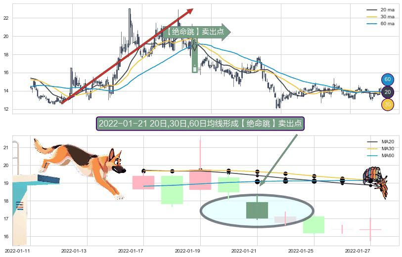 形态多维评估: ⚀ 2022-01-21日显现 20日-30日-60日均线 【绝命跳】卖出点 看空信号,后市看跌,卖出
