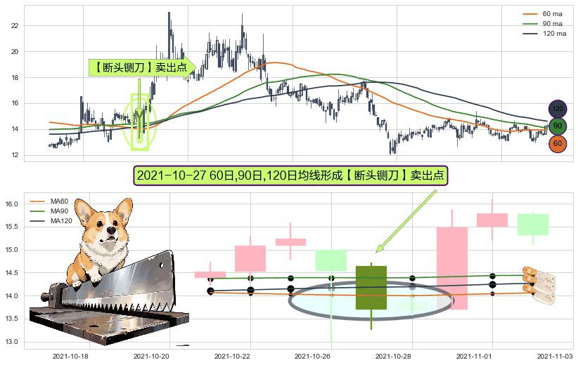 形态多维评估: ⚀ 2021-10-27日显现 60日-90日-120日均线 【断头铡刀】卖出点 看空信号,后市看跌,卖出