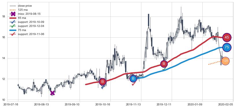 上涨趋势2019-07-16-2020-02-05,均线75, 45确认关键支撑3处
