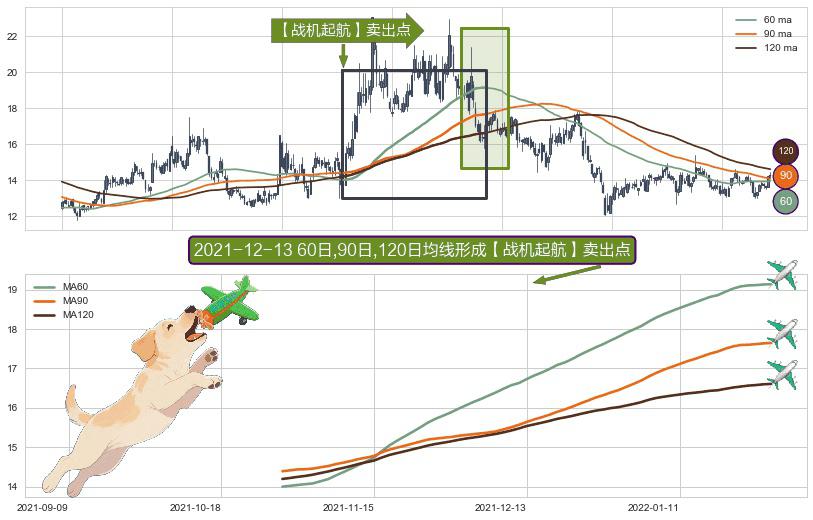 形态多维评估: ⚀ 2021-10-28日-2022-01-27日显现 60日-90日-120日均线 【战机起航】卖出点 看空信号,后市看跌,卖出