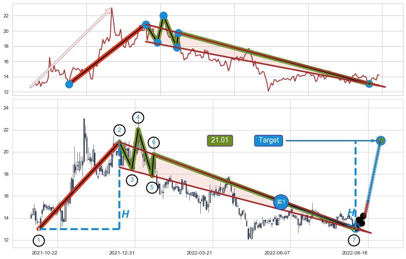 ➢ 最小中继整理涨幅→𝐇: 7.87 (𝐇楔型旗杆的长度:楔型起点→顶点)
