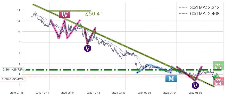 ♘ 阻力价格位2.864,可信任强度86.28%,距离最后交易2022-08-12形成的收盘价格2.260相差 +26.72%