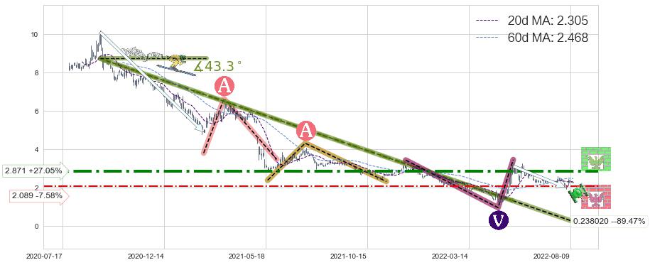 ➣ 2020-09-08-2022-05-19下跌趋势存在反转上涨[机会],其原下跌趋势的阻力位(0.238020)已被突破[强支撑信号],原下跌趋势角度: 43.3˚