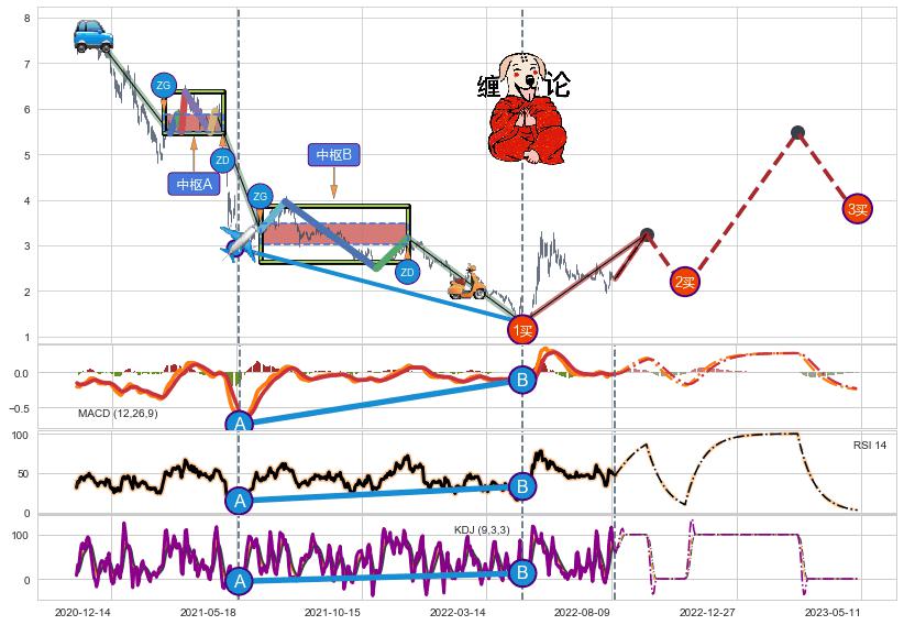 ➣ 【中枢B】:2021-06-15-2021-12-07,中枢由4笔构成,共119交易日, ZG=3.330, ZD=3.160