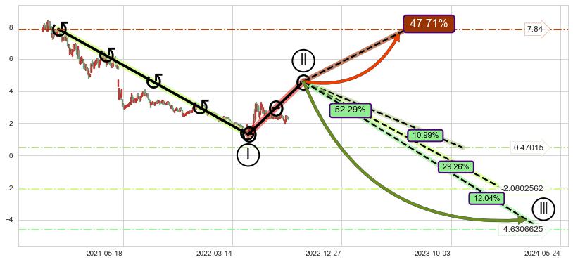 ➢ 循环浪继续向下【最低】位置(2024-05-24, -4.6306625),匹配聚类样本比例23.02%, 可能性概率12.04%