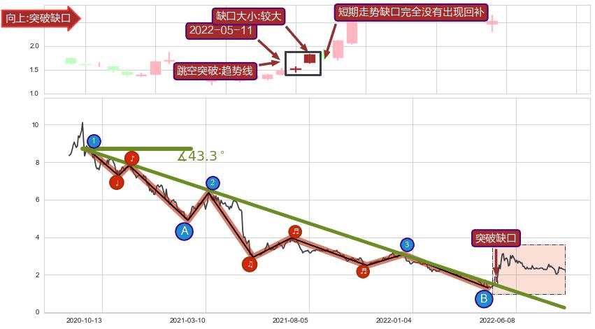 ➢ 最后的下跌趋势2020-09-08至2022-05-19:存在突破迹象,后续小反弹或者反转上涨