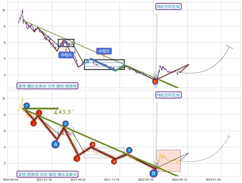 | 12 🅚:【高山滑雪】买入点 ➕ ☯️:缠论买卖点下降缠中枢AB形成后猜想拐点1买已到达,猜想后续持续拉升(均值回复) ☞ 看多信号 ⇥ 【均线】交织【图形】⇥ 综合量化分数: 51 | > |