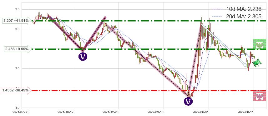 ♘ 阻力价格位2.486,可信任强度84.70%,距离最后交易2022-08-12形成的收盘价格2.260相差 +9.99%