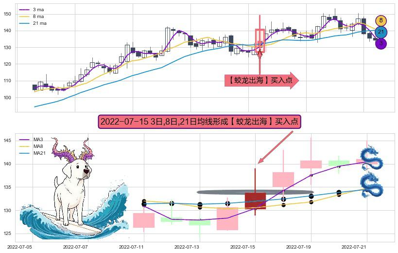 形态多维评估: ⚀ 2022-07-15日显现 3日-8日-21日均线 【蛟龙出海】买入点 看多信号,后市看涨,买入