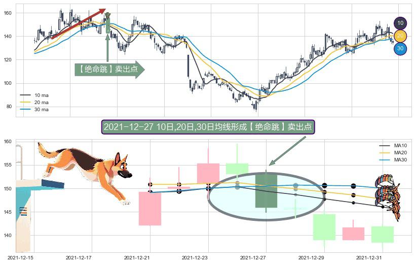 形态多维评估: ⚀ 2021-12-27日显现 10日-20日-30日均线 【绝命跳】卖出点 看空信号,后市看跌,卖出