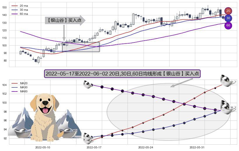 形态多维评估: ⚀ 2022-05-18-日至2022-06-02-日显现 20日-30日-60日均线 【银山谷】买入点 看多信号,后市看涨,买入