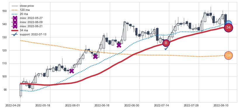 1. 34日均线确认关键支撑: 2022-07-13
