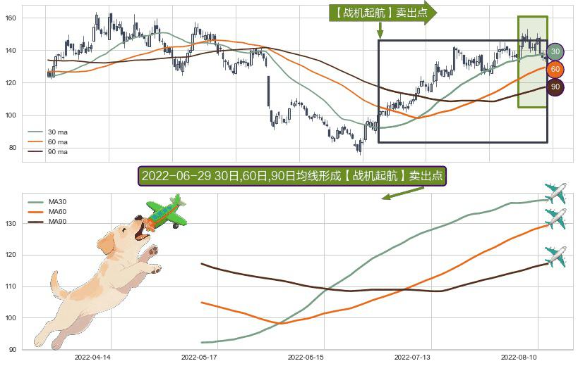 形态多维评估: ⚀ 2022-05-12日-2022-08-12日显现 30日-60日-90日均线 【战机起航】卖出点 看空信号,后市看跌,卖出