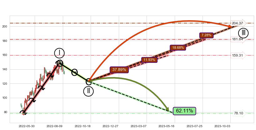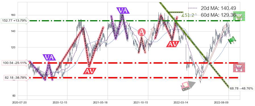 ♘ 阻力价格位152.77,可信任强度74.31%,距离最后交易2022-08-12形成的收盘价格134.25相差 +13.79%