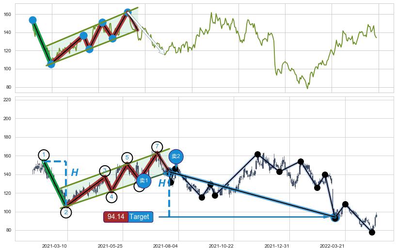 ➣ 【卖2】: 保守型 卖点→(2021-08-02: 144.61 )形成升⚑旗形突破后的【回抽确认】