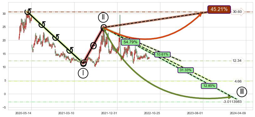 ➣ 【仅预测突破】最后价格:13.54与预测突破价格:24.76→【空间较大】后续最小【反转】第一目标价格→(2023-03-06: 39.13 )