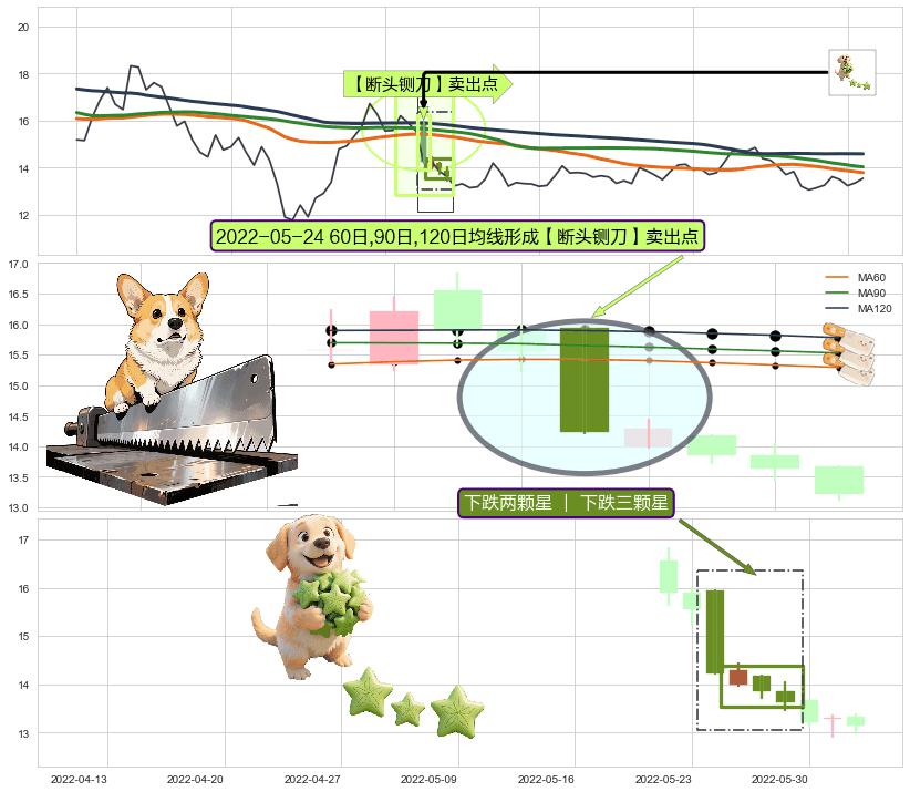 | 2 🅚:黄昏之星(夜星) ➕ 🎢:【断头铡刀】卖出点均线组合卖出点信号形成后,猜想后续支撑破位,后市持续下跌 ☞ 看空信号 ⇥ 【均线】交织【🅚线】⇥ 综合量化分数: 45 | > |