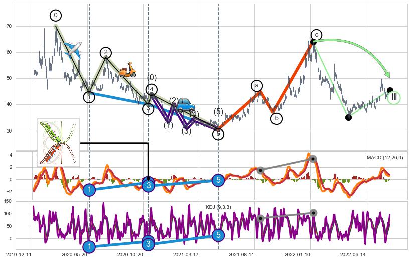 ➢ a,c调整浪MACD, RSI, KDJ走势都【未出现】背离,abc走势延续, 5浪反转概率增强