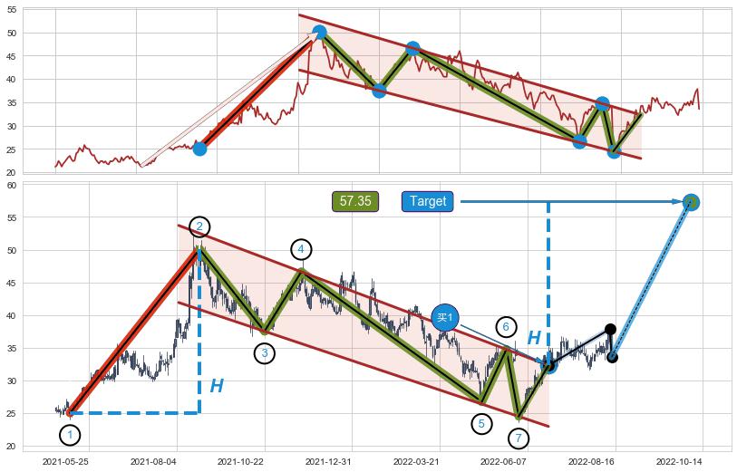 ➢ 【已确认突破】最后价格:33.54与最小【整理】第一目标价格→(2022-10-14: 57.35 )相较: 上涨空间【较大】