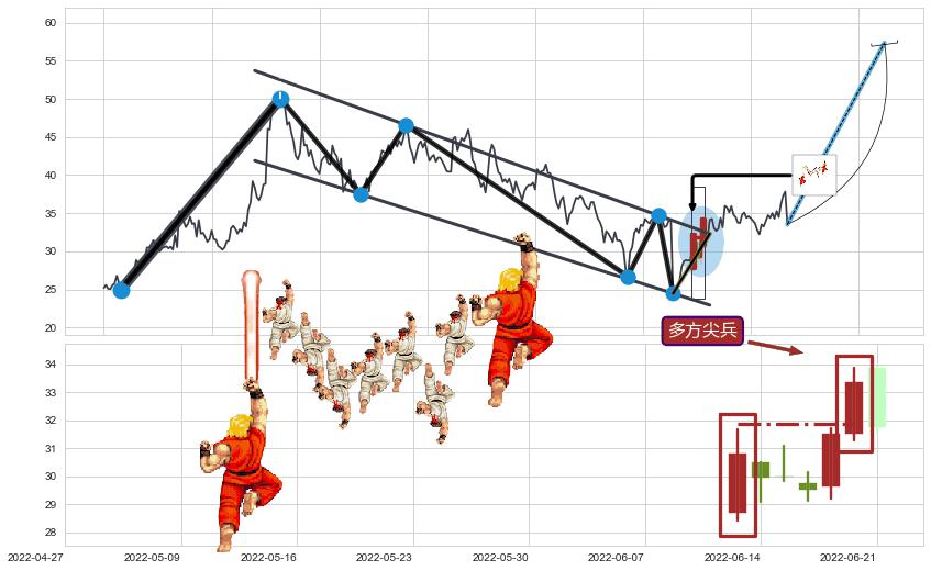 | 7 🅚:上涨镊子线(U形磁铁) ➕ 📐:降旗形向上突破击穿阻力位, 猜想持续拉升上涨,被突破的阻力位已变为支撑位 ☞ 看多信号 ⇥ 【🅚线】交织【图形】⇥ 综合量化分数: 58 | > |