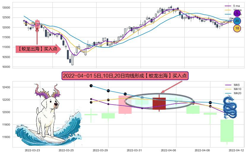 ⚀ 2022-04-01日显现 5日-10日-20日均线 【蛟龙出海】买入点 看多信号,后市看涨,买入