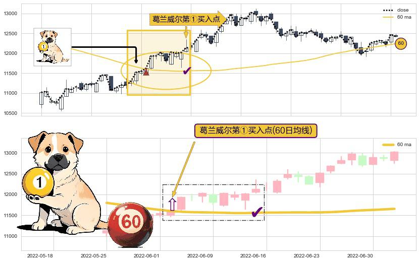 ⚀ 2022-06-02-日显现 葛兰威尔均线 60日均线 第买①入点 走势反转见底信号,后市看涨,买进信号