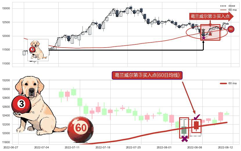 ⚀ 2022-08-05-日显现 葛兰威尔均线 60日均线 第③买入点 上升趋势的中继信号,后市看涨,买进信号