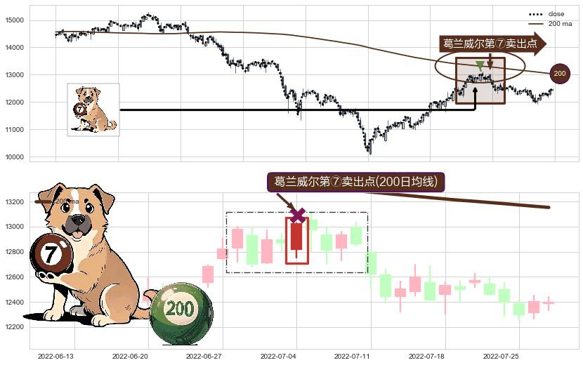 ⚀ 2022-07-04-日显现 葛兰威尔均线 200日均线 第⑦卖出点 下降趋势的中继信号,后市看跌,卖出信号
