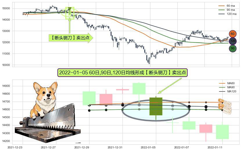 ⚀ 2022-01-05日显现 60日-90日-120日均线 【断头铡刀】卖出点 看空信号,后市看跌,卖出