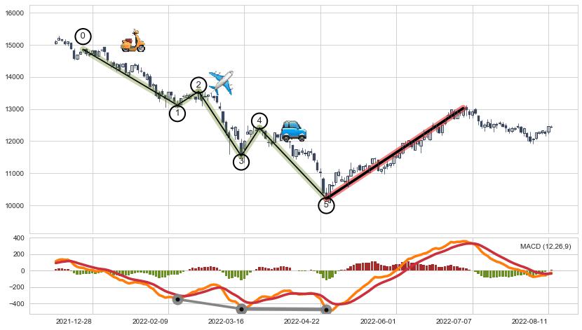 ➣ 【中枢B】:2022-03-16-2022-03-30,中枢由4笔构成,共11交易日, ZG=12263.80, ZD=12001.00