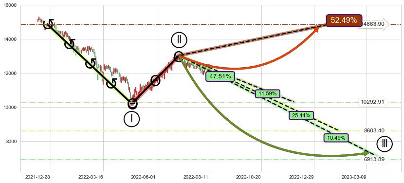 ♘ 阻力价格位14864.77,可信任强度91.00%,距离最后交易2022-08-12形成的收盘价格12419.80相差 +19.69%