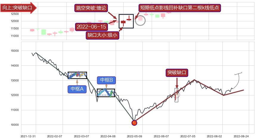 ➢ 低点影线(2022-06-17: 12036.30 )→回踩→第二根k线低点(2022-06-15: 12038.80 )