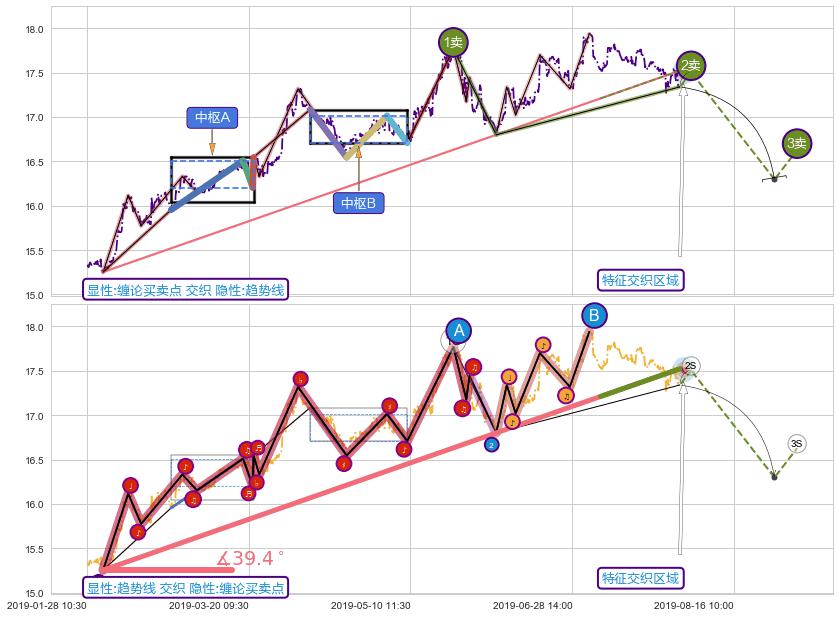 从2019-06-28 10:30至2019-07-31 15:00,共包含137个小时,阶段股价上涨0.19%,阶段股价变动位移路程比: 1 : 147