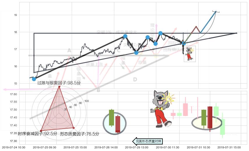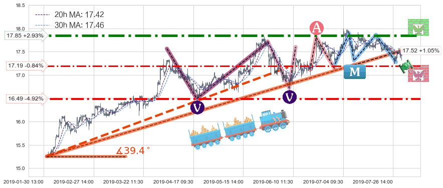 ♘ 阻力价格位17.85,可信任强度88.45%,距离最后交易2019-07-31 15:00形成的收盘价格17.34相差 +2.93%