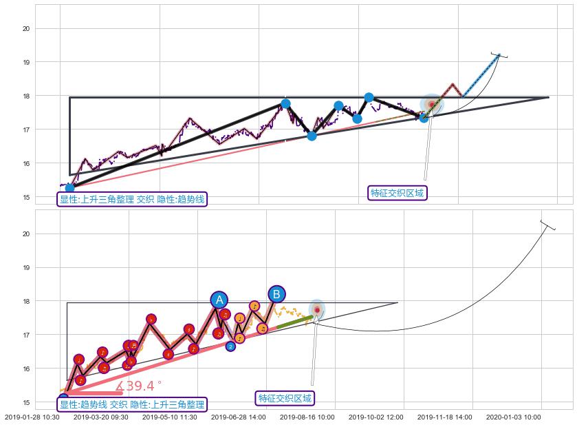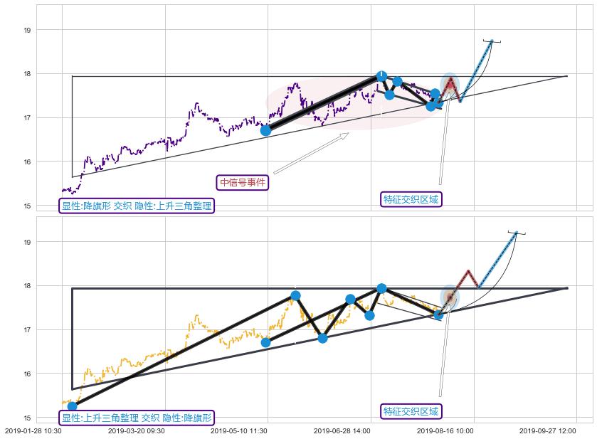 ➢ 上升三角整理与趋势线信号事件周期长度级别相同,同周期信号事件
