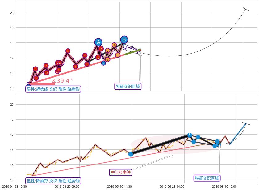 从2019-01-31 13:00至2019-07-09 13:00,共包含616个小时,阶段股价上涨14.42%,阶段股价变动位移路程比: 1 : 10,上涨趋势角度: 39.4