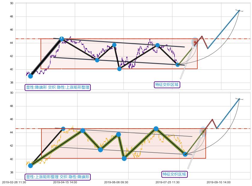 ➢ 上涨矩形整理:猜想临近关键阻力位突破点 → 临近拐点上涨 → 机会信号 → 大趋势均值回复